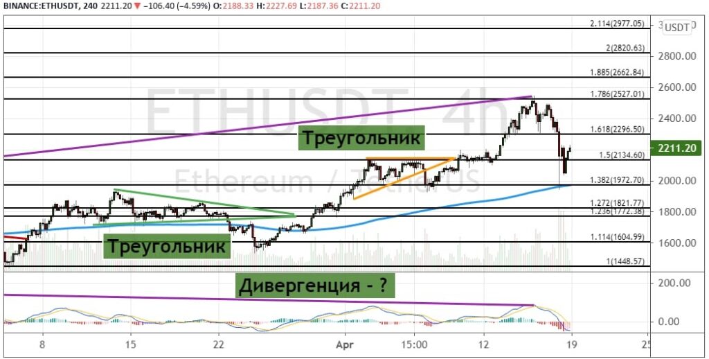 График ETH/USD, четырехчасовой таймфрейм.