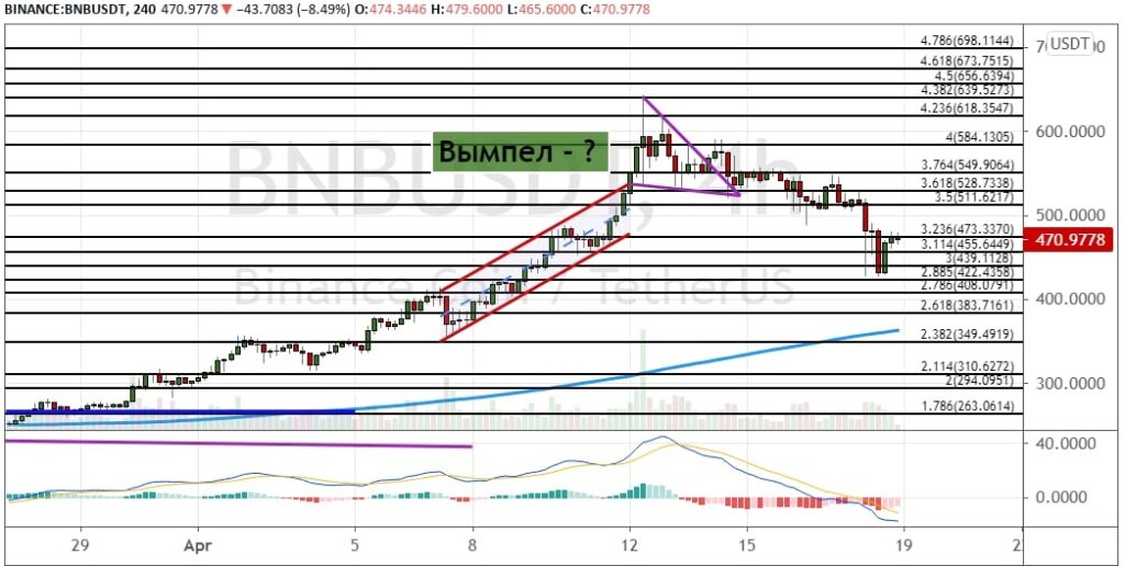 График BNB/USD, четырехчасовой таймфрейм.
