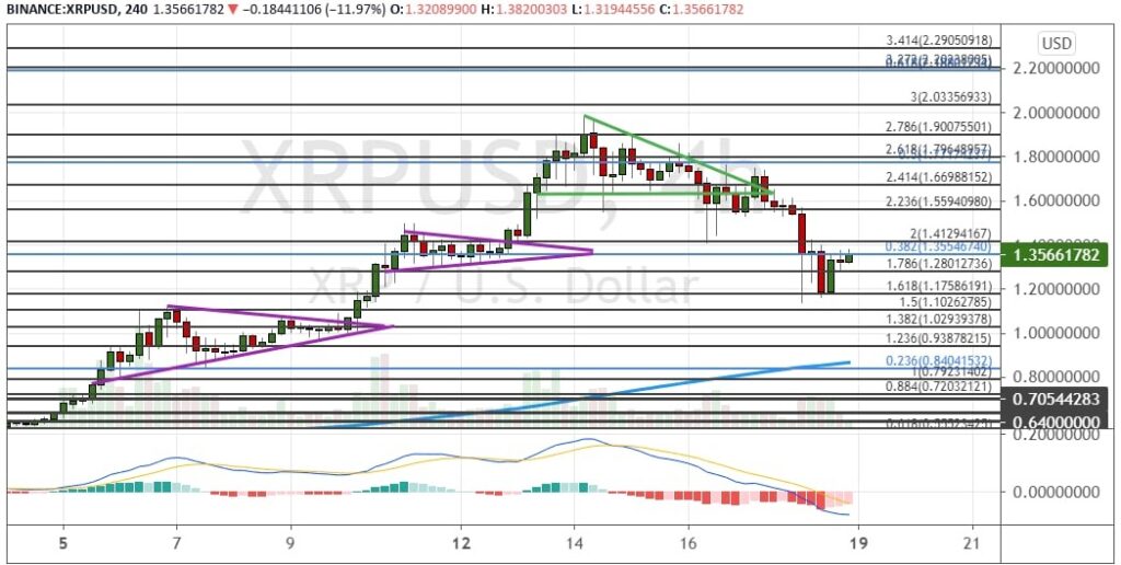 Движение вверх позволит котировкам XRP достичь уровней $1.36, $1.41 и $1.56. А сохранение этой динамики поможет XRP протестировать уровни $1.67 и $1.80. Более того, если XRP закрепится выше $1.90 и $2.00, то это позволит котировкам альткоина взлететь к целям $2.20 и $2.30, рассчитанным на основе уровней пропорции Фибоначчи.