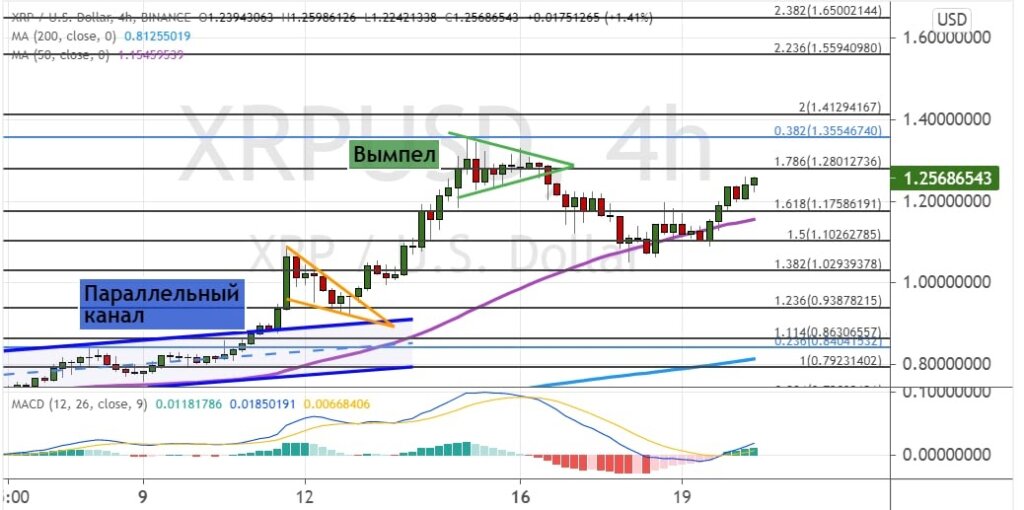График XRP/USD, четырехчасовой таймфрейм. Источник