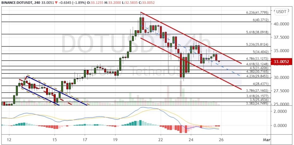 График DOT/USD, четырехчасовой таймфрейм.