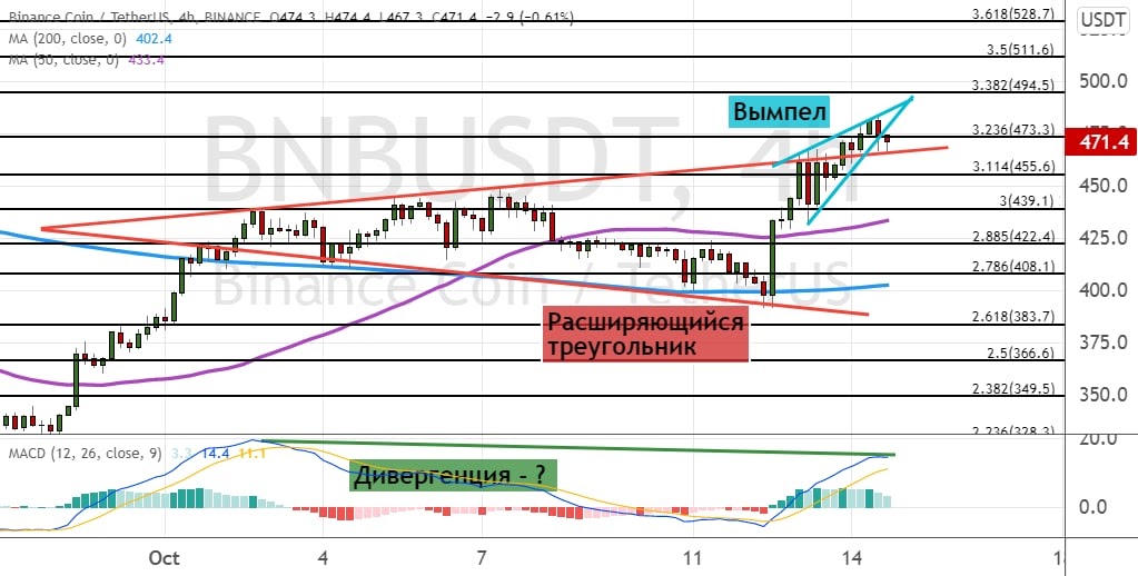График BNB/USDT, четырехчасовой таймфрейм. Источник