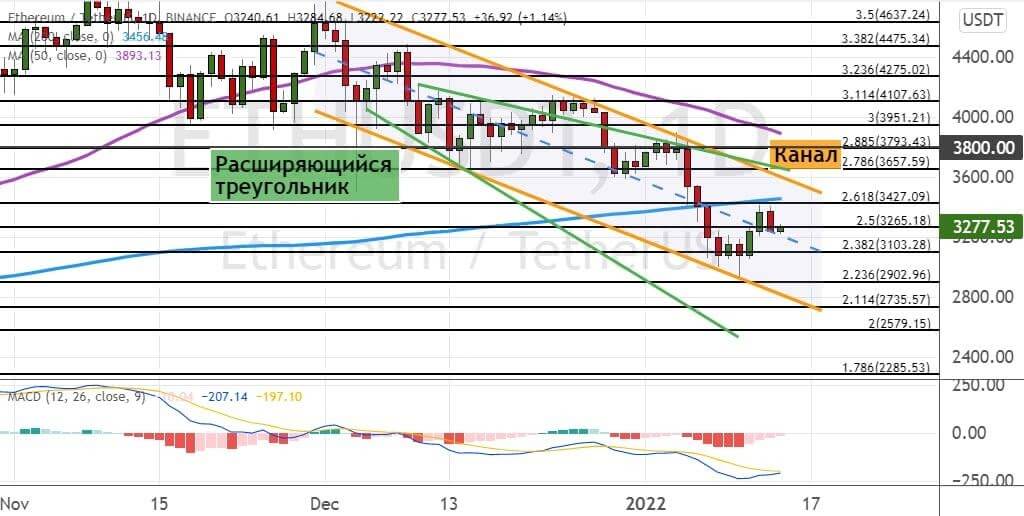 Однако рост стоимости альткоина выше $3 430 откроет путь для движения к первой цели $3 670, где проходит верхняя граница модели теханализа «Расширяющийся треугольник». Далее эфир может направиться к целям $3 800 и $3 900, где также проходит линия 50-дневной SMA.