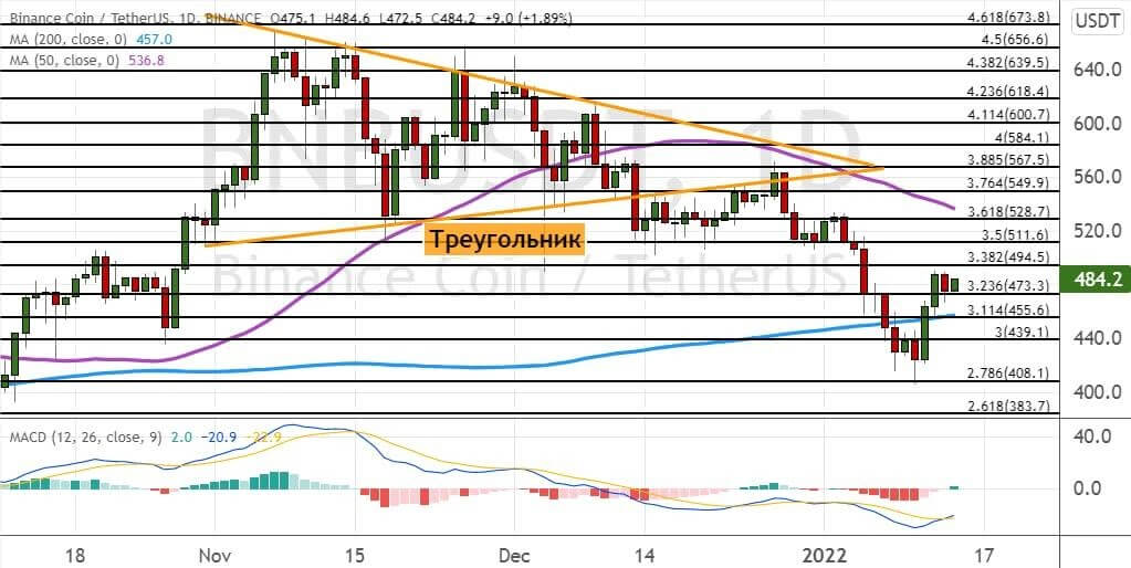 Текущие торги BNB проходят между уровнем поддержки $473 и сопротивлением $495. Новая волна продаж направит альткоин к поддержке $455, где проходит линия 200-дневной SMA. Закрытие дневных свечей ниже $455 направит котировки BNB к первым целям на $440 и $410. А более глубокая коррекция приведет к снижению стоимости до $380.