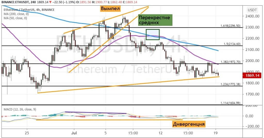График ETH/USD, четырехчасовой таймфрейм.