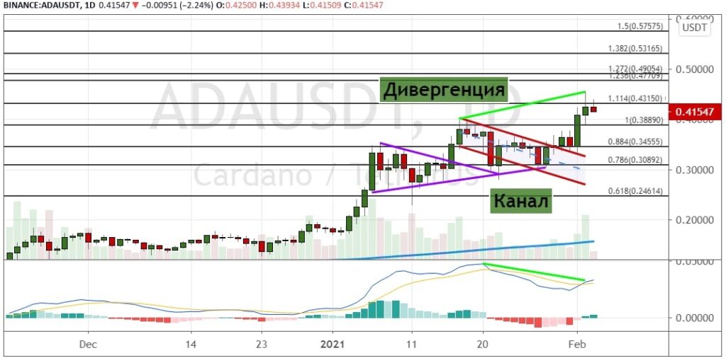 График ADA/USDT, дневной таймфрейм.