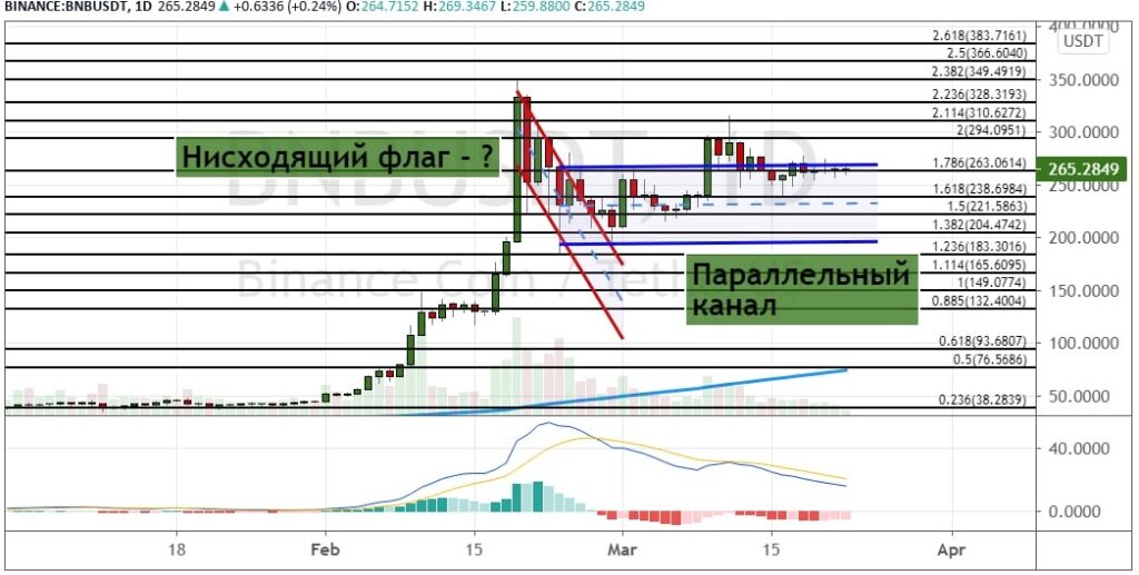 Но в случае превалирования медведей на крипторынке котировки BNB могут снизиться к уровню $238, где проходит линия 200-дневной SMA. Более глубокая коррекция приведет к ретесту уровней $220 и $200, где проходит нижняя граница «Параллельного канала».