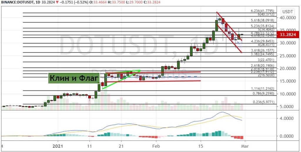 График DOT/USD, дневной таймфрейм.