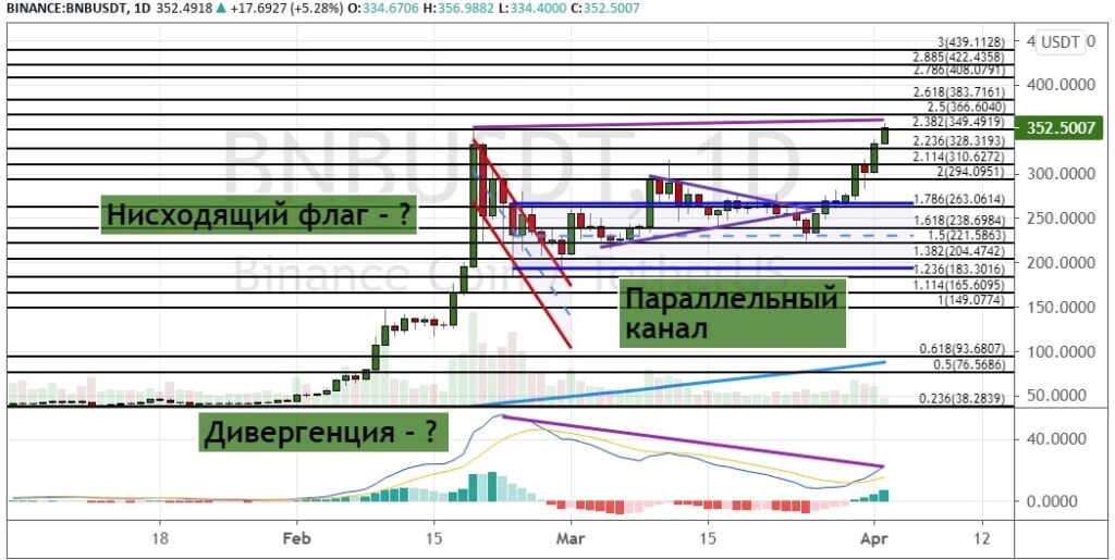 Котировки BNB также стали рекордсменами и обновили свои максимальные значения, достигнув целей $328 и $350. Это произошло в рамках развития восходящего тренда, который начался после того, как котировки BNB вышли за границы модели теханализа «Параллельный канал» (представлен на графике ниже).