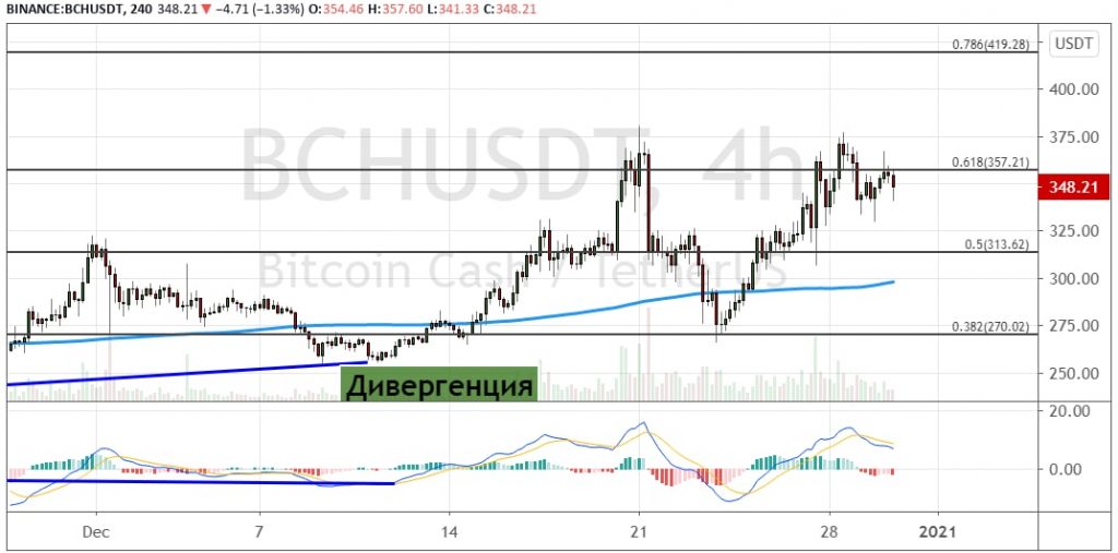 График BCH/USD, четырехчасовой таймфрейм.