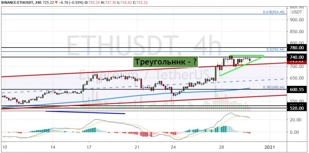 График ETH/USD, четырехчасовой таймфрейм.