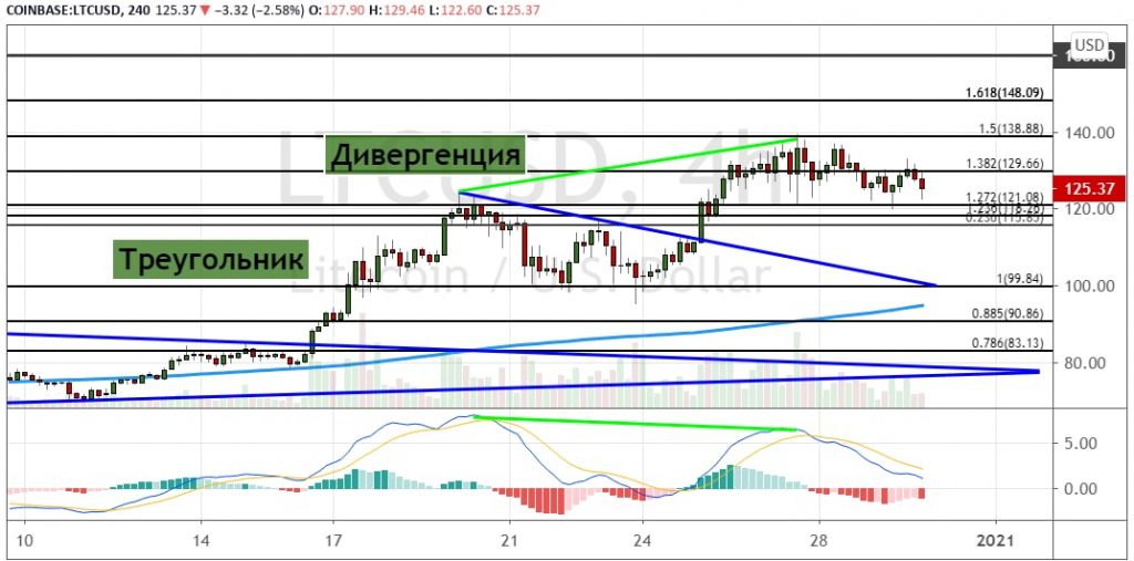 График LTC/USDT, четырехчасовой таймфрейм.