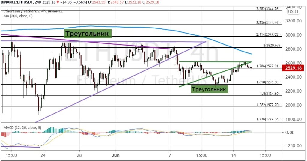 На графике ниже можно отметить, что эфир попытался пробить нижнюю границу модели теханализа «Восходящий треугольник». Если котировки ETH смогут закрепиться выше $2 530 и $2 600, это позволит им подняться выше линии 200-периодной SMA. В результате котировки направятся вверх к целям $2 820, $3 000 и $3 150.