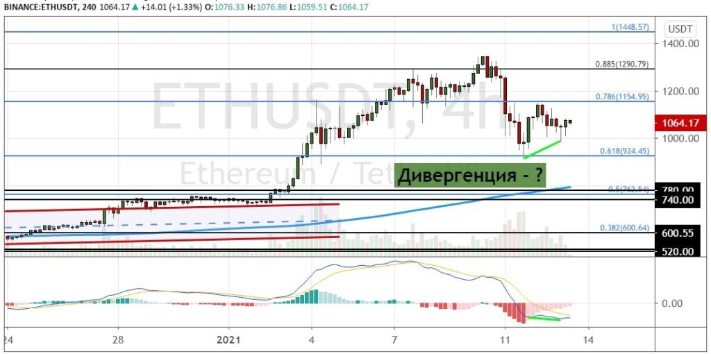 График ETH/USD, четырехчасовой таймфрейм.