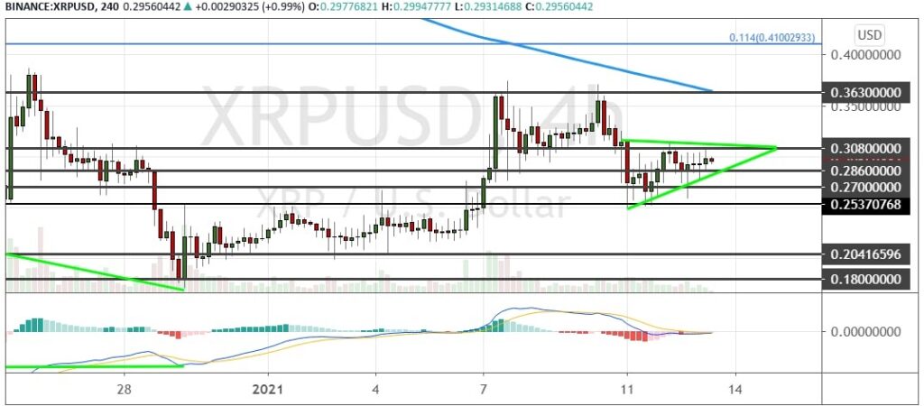 Поддержками для текущих котировок актива выступают уровни $0.27 и $0.2860. При условии, что рипл опустится ниже важной поддержки $0.2540, котировки отправятся вниз к $0.2360, $0.20 и $0.1480.