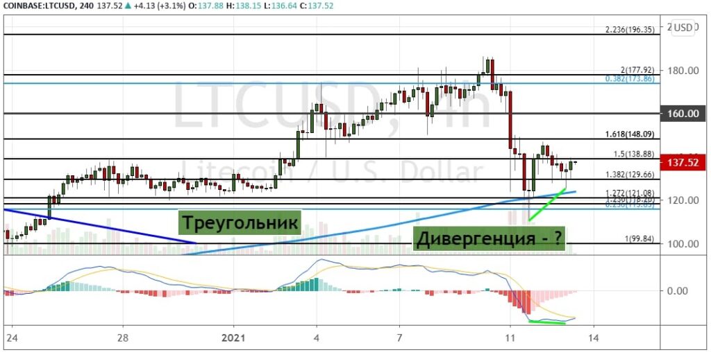 График LTC/USDT, четырехчасовой таймфрейм.