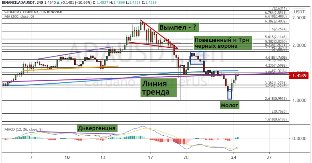 График ADA/USD, четырехчасовой таймфрейм.