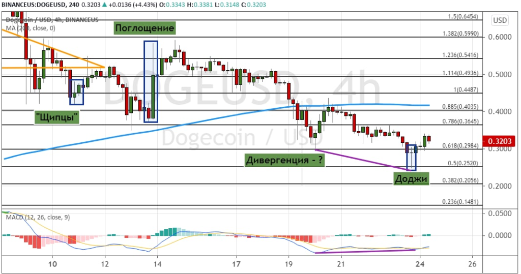 График Doge/USD, четырехчасовой таймфрейм.