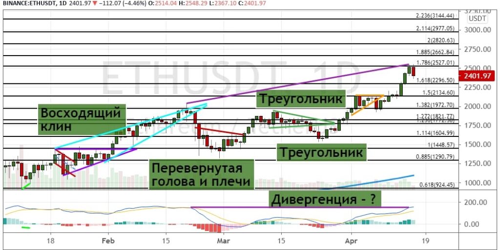 Эфир реализовал прогноз по развитию восходящего движения к целям $2 300 и $2 400, которые теперь выступают поддержками в рамках развивающейся коррекции.
