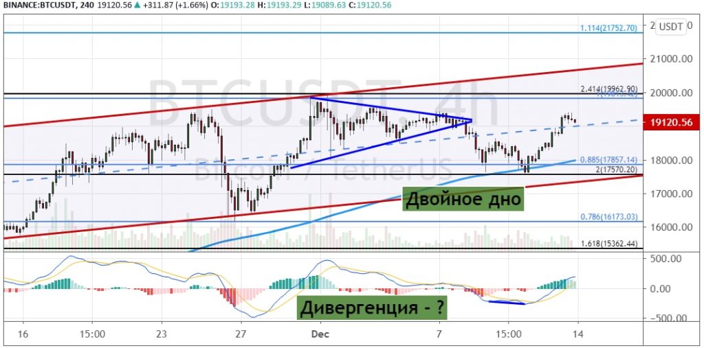 В выходные крипторынок получил импульсы роста, которые могут указывать на скорое окончание коррекции. В пользу этих ожиданий говорит ряд фундаментальных факторов. Во-первых, на прошлой неделе один из участников недавней президентской гонки в США Рон Пол сообщил о необходимости легализовать биткоин и сократить количество правовых ограничений крипторынка. Во-вторых, сегодня ведущий программы о финансах «Mad Money» Джим Крамер рассказал, что инвестировал в биткоин в ходе текущей коррекции. Также о своих вложениях в  BTC 11 декабря рассказал бывший глава соцсети BeBo и нынешний директор по продуктам cтpимингoвoгo cepвиca Twitch Шаан Пури. Он вложил в первую криптовалюту 25% своего капитала. И в завершение, запущенный в конце 2019 года кастодиальный сервис для хранения криптовалют от инвестиционной компании Fidelity Investments оказался чрезвычайно успешным, о чем сообщила генеральный директор компании Эбигейл Джонсон.