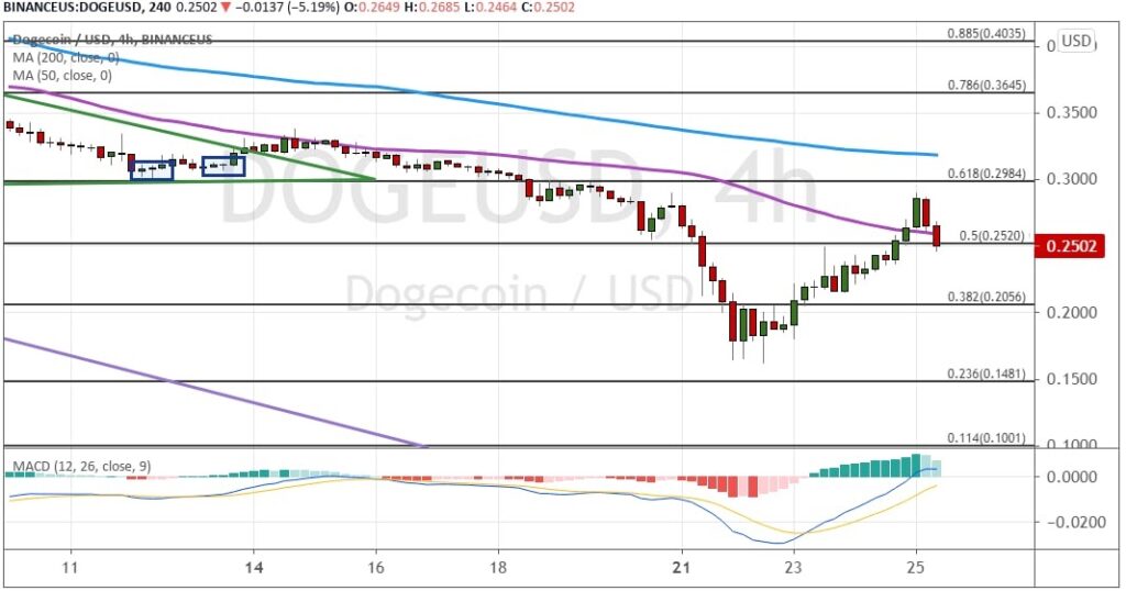Но в перспективе стоит ожидать роста котировок DOGE выше $0.3, где проходит линия 200-периодной SMA. Это позволит альткоину подняться в перспективе предстоящих месяцев к $0.3650, $0.40 и $0.50.