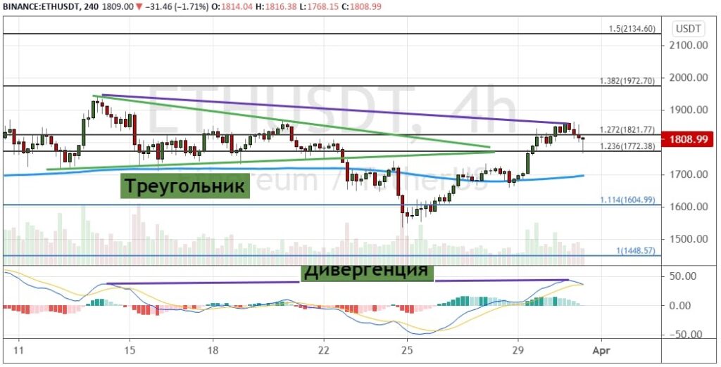 График ETH/USD, четырехчасовой таймфрейм.