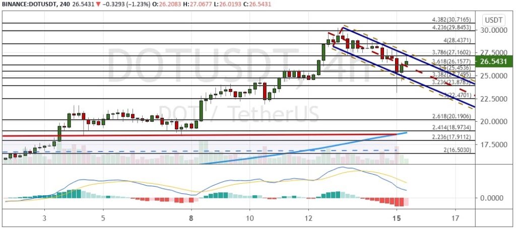 График DOT/USD, четырехчасовой таймфрейм.