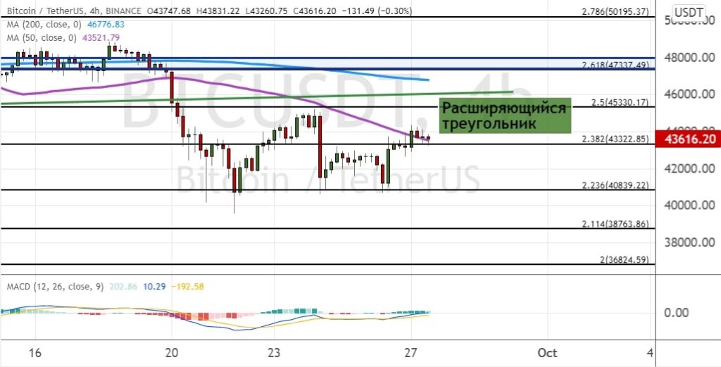 График BTC/USD, четырехчасовой таймфрейм. Источник.