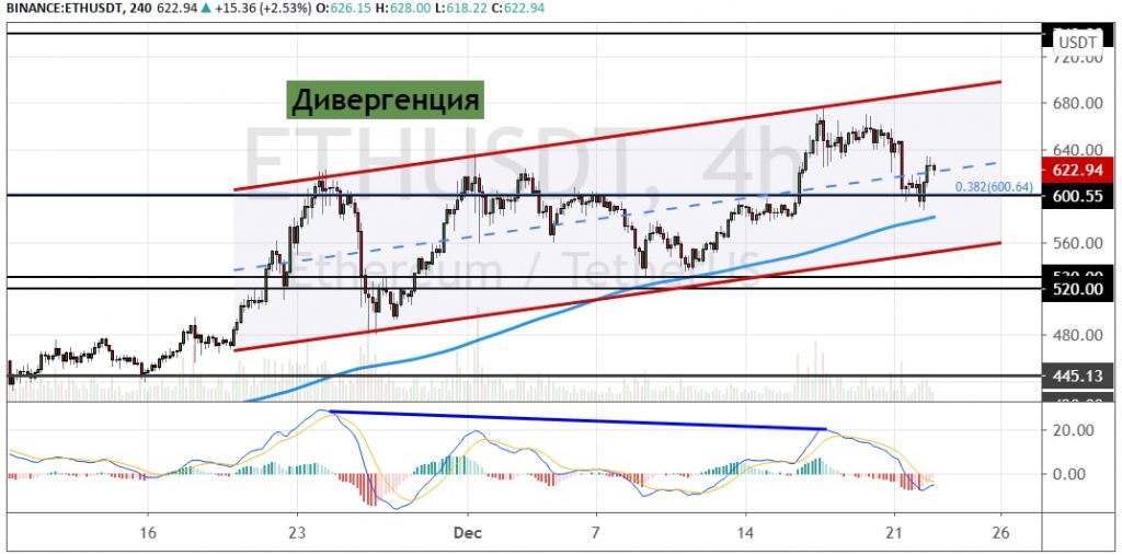 График ETH/USD, четырехчасовой таймфрейм.
