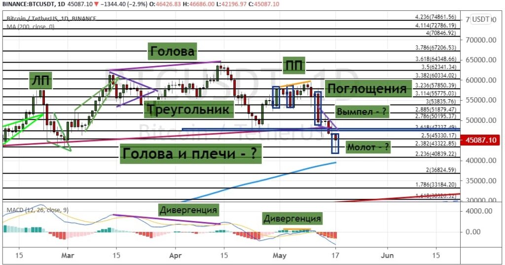 Теханализ: падение биткоина и взлет Dogecoin на фоне твитов Илона Маска