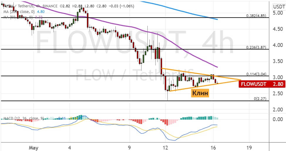 График FLOW/USDT, четырехчасовой таймфрейм. Источник