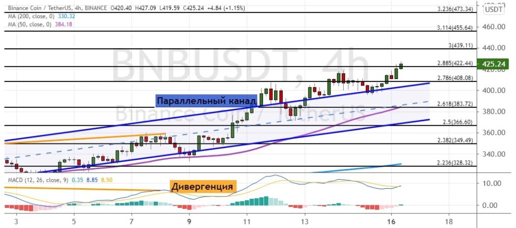 График BNB/USDT, четырехчасовой таймфрейм. Источник
