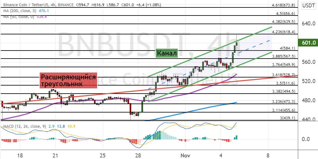 На этой неделе котировки BNB уверенно двигались вверх, что привело к росту выше важного сопротивления $580.