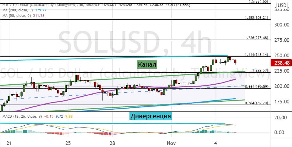 График SOL/USD, четырехчасовой таймфрейм. Источник.