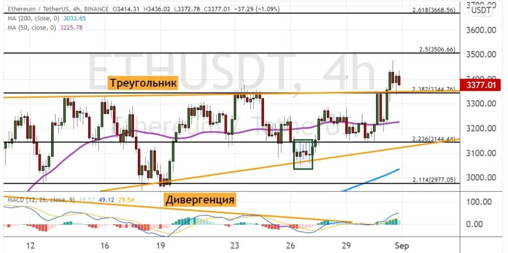 График ETH/USD, четырехчасовой таймфрейм. Источник