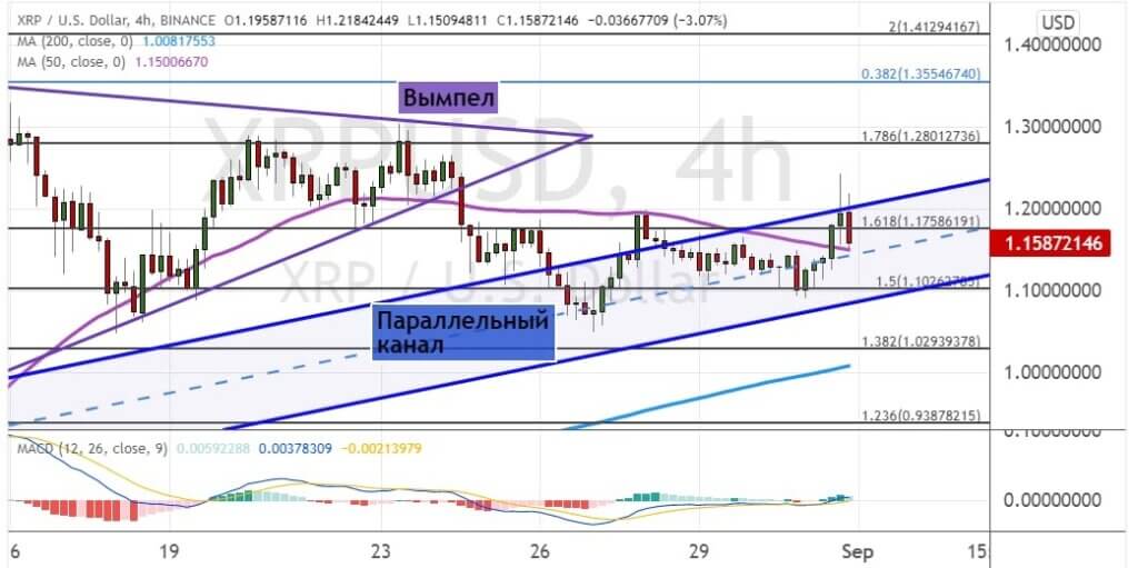 График XRP/USD, четырехчасовой таймфрейм. Источник