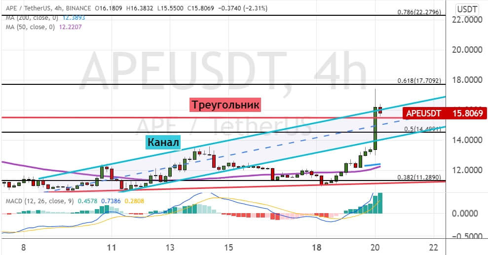 График APE/USDT, четырехчасовой таймфрейм. Источник