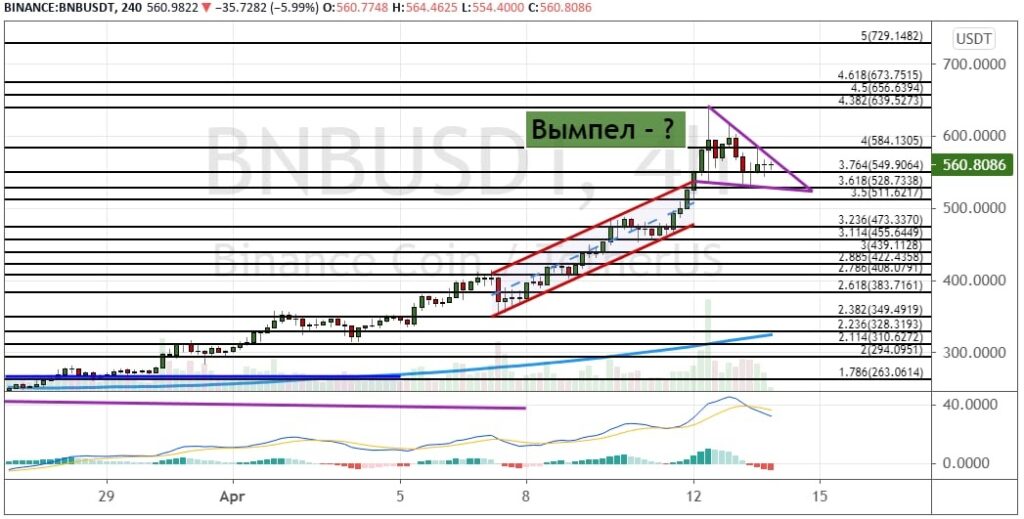 График BNB/USD, четырехчасовой таймфрейм.
