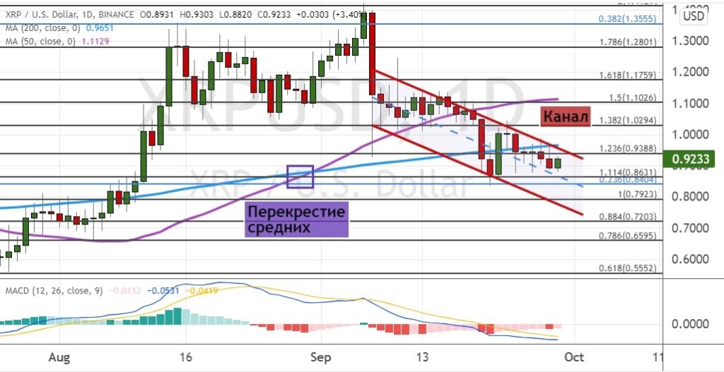 Однако в среднесрочной перспективе альткоин, скорее всего, возобновит рост и направится к целям $1, $1.10, где расположилась линия 50-дневной SMA, и $1.20. Данный сценарий будет реализован, если котировкам XRP удастся закрепиться выше уровня $0.94, где проходит линия 200-дневной SMA и грань «Канала».