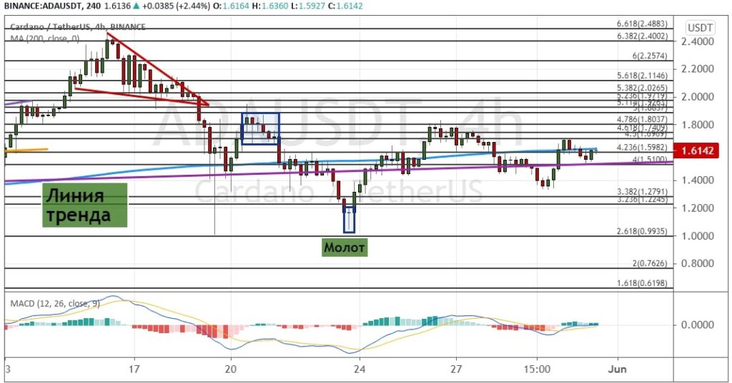 График ADA/USD, четырехчасовой таймфрейм.