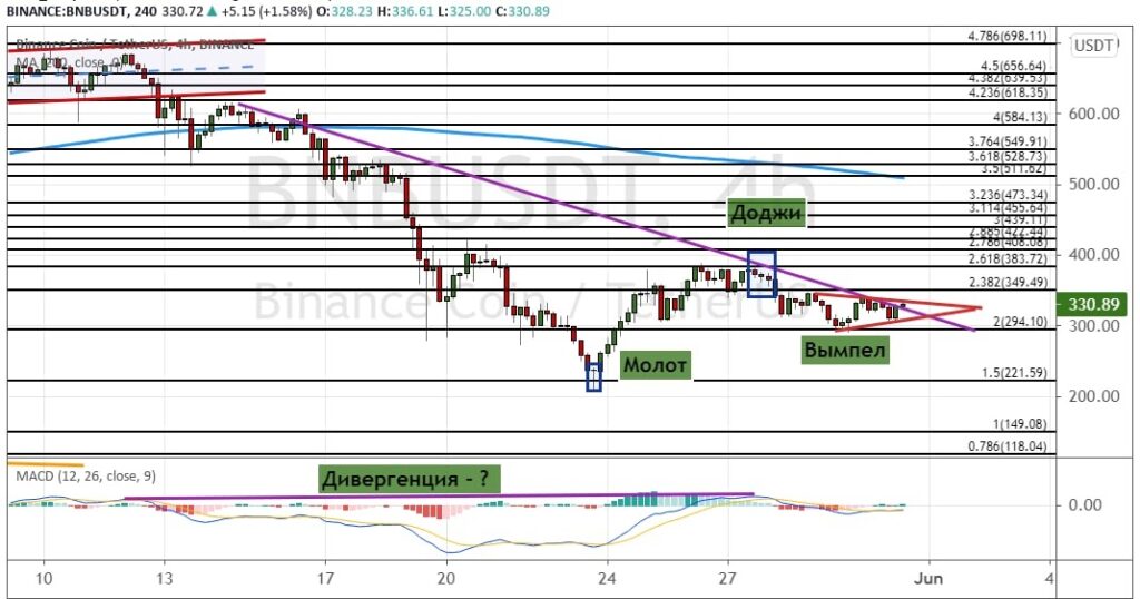График BNB/USDT, четырехчасовой таймфрейм.