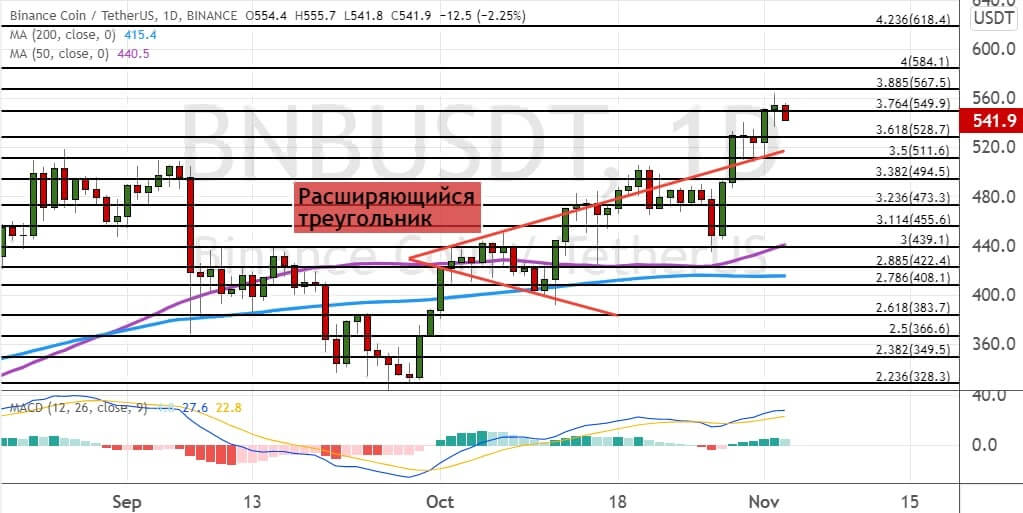 График BNB/USDT, дневной таймфрейм. Источник.