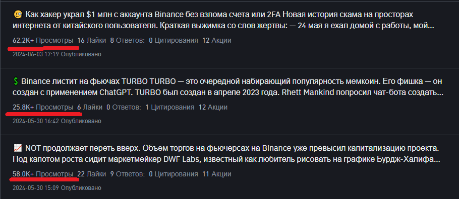 Просмотры новостей CryptoPizza на Binance Square. Источник