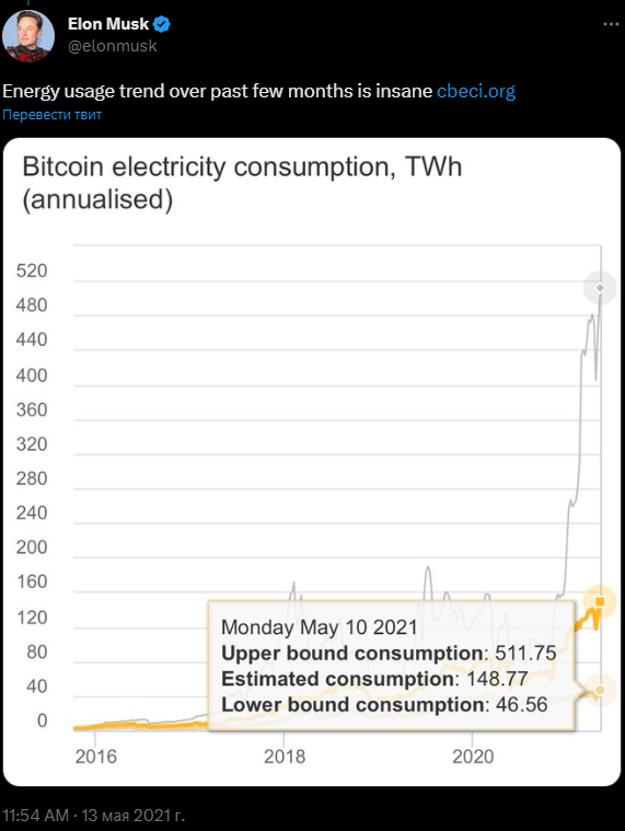 12 мая генеральный директор Tesla Илон Маск опубликовал твит о том, что его компания больше не будет принимать биткоин в качестве оплаты за электрокары. Главной причиной такого решения Маск назвал опасения по поводу того, что майнинг в сети Bitcoin вредит экологии и пагубного воздействует на окружающую среду. В результате в тот же день стоимость биткоина упала с почти $58 000 до $46 960, а криптосообщество раскритиковало слова предпринимателя. Однако это далеко не первый раз, когда сеть Bitcoin обвиняют в чрезмерном потреблении электроэнергии. Критики первой по капитализации криптовалюты часто используют этот аргумент как главную причину того, что биткоин никогда не получит широкое использование. Разобрались, насколько обоснована подобная критика и может ли биткоин стать «зеленой» криптовалютой.