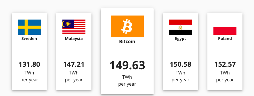 Важно понимать, что сравнение энергозатрат на майнинг биткоина с энергопотреблением целой страны не очень корректно. Биткоин — не страна, а BTC-майнеры распределены по всему миру.