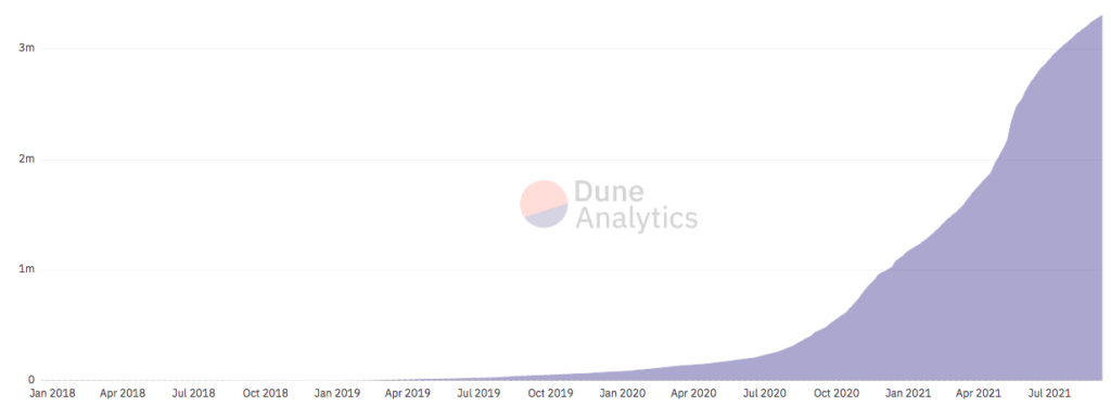 По данным аналитического агентства Dune Analytics, общее количество уникальных DeFi-адресов составляет 3.31 млн. Это немного по сравнению с общим количеством владельцев криптовалют, оцениваемым в свыше 220 млн человек