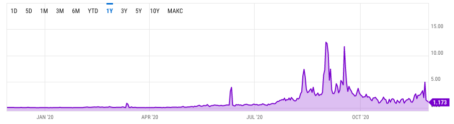 В Ethereum стоимость комиссии за транзакцию определяется количеством и ценой затраченных ресурсов («газом»). Этот показатель регулируется лишь ростом цены эфира. С начала 2020 года стоимость транзакции выросла в 15.4 раза — с $0.076 до $1.173, а в сентябре достигла своего исторического максимума — $13.4. Это очень дорого для крупнейшей блокчейн-сети, которую используют сотни и тысячи проектов.