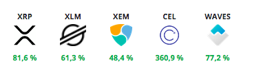 Монеты из топ-50, которые за последние 90 дней показали большую доходность, чем биткоин. Источник.