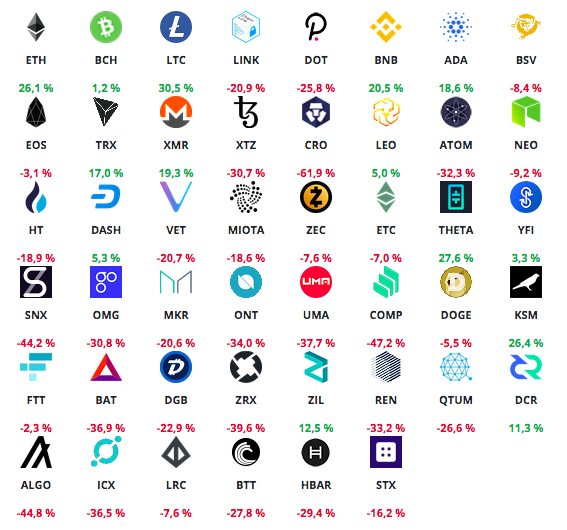 Глядя на эти цифры, не хочется обращать внимания на технические индикаторы. Поэтому большая часть криптосообщества уверена — сезон альткоинов уже начался. Конечно, до темпов роста 2017 года, когда за год активы дорожали в десятки и сотни раз, далеко. Но множество альткоинов и монет DeFi-протоколов растут и показывают отличную доходность.