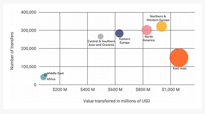 Криптовалютные переводы используют не только трудовые мигранты, но и местный бизнес. Согласно данным Chainalysis, Восточная Азия является одним из основных регионов, в который переводят криптовалюты из Латинской Америки. Многие из этих платежей на самом деле являются коммерческими сделками между азиатскими экспортерами и латиноамериканскими компаниями, покупающими товары для розничной продажи. Местные фирмы используют биткоин для расчетов, потому что транзакции с ним быстрее и проще, чем банковские платежи, которые к тому же надо сопровождать подтверждающими документами.